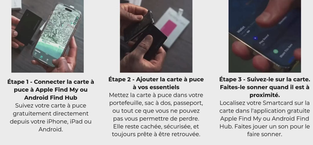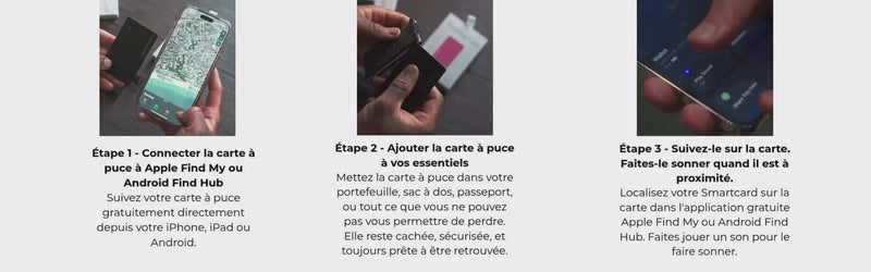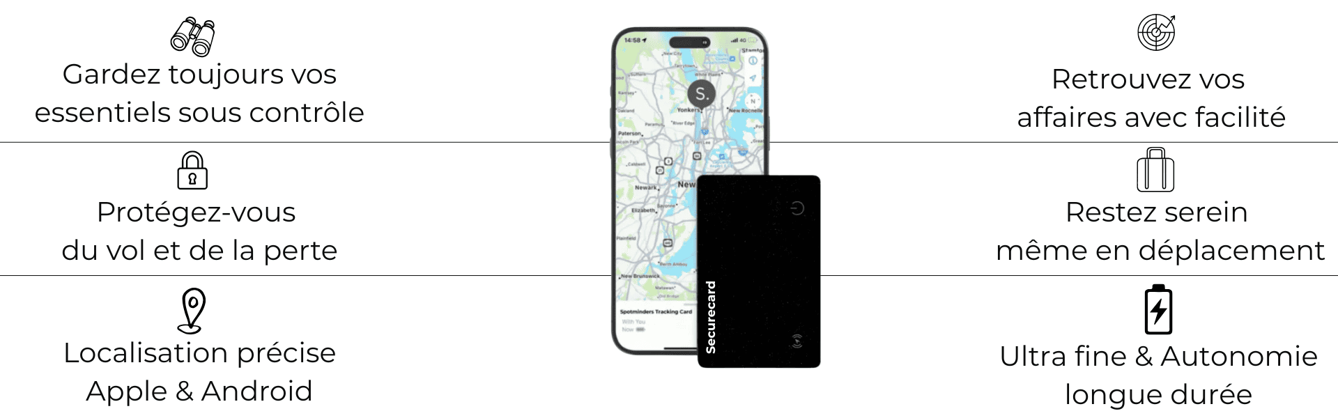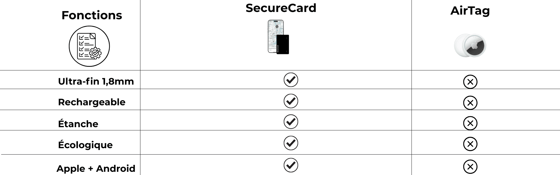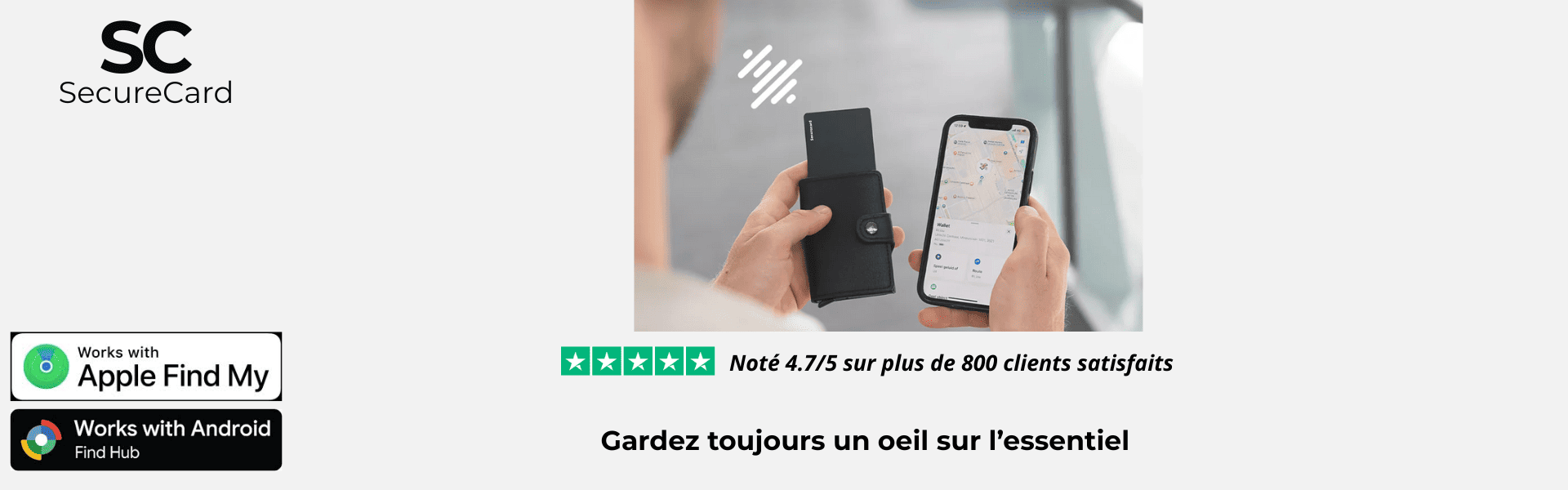 SecureCard est parfaitement compatible avec Apple Find My et Android Find Hub.