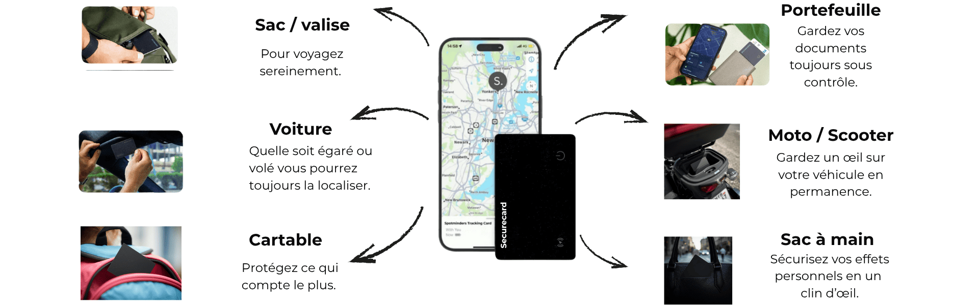 Glissez simplement SecureCard dans votre portefeuille, sac, valise, voiture ou tout autre objet.